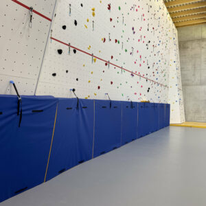 Strap kit for securing mats against the wallKit sangles de relevage en position verticale des tapis contre les murs pour tapis PLIANT – Sangle Cousue au tapis en position centrale et anneau male M10 avec Came a griffe a visser au mur